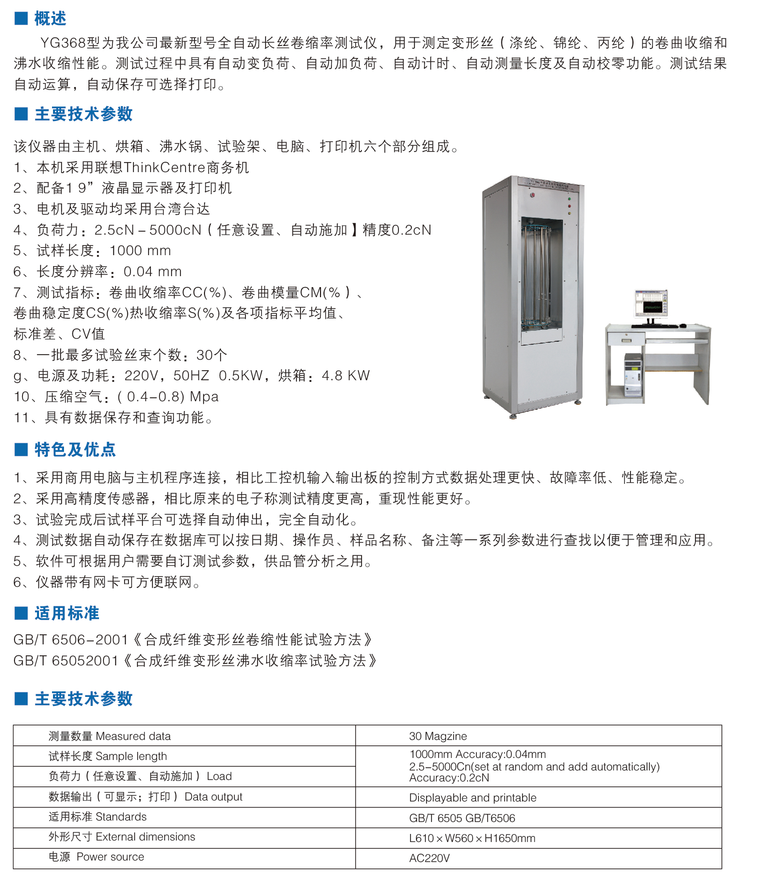 YG368全自動(dòng)長(zhǎng)絲卷縮率測(cè)試儀