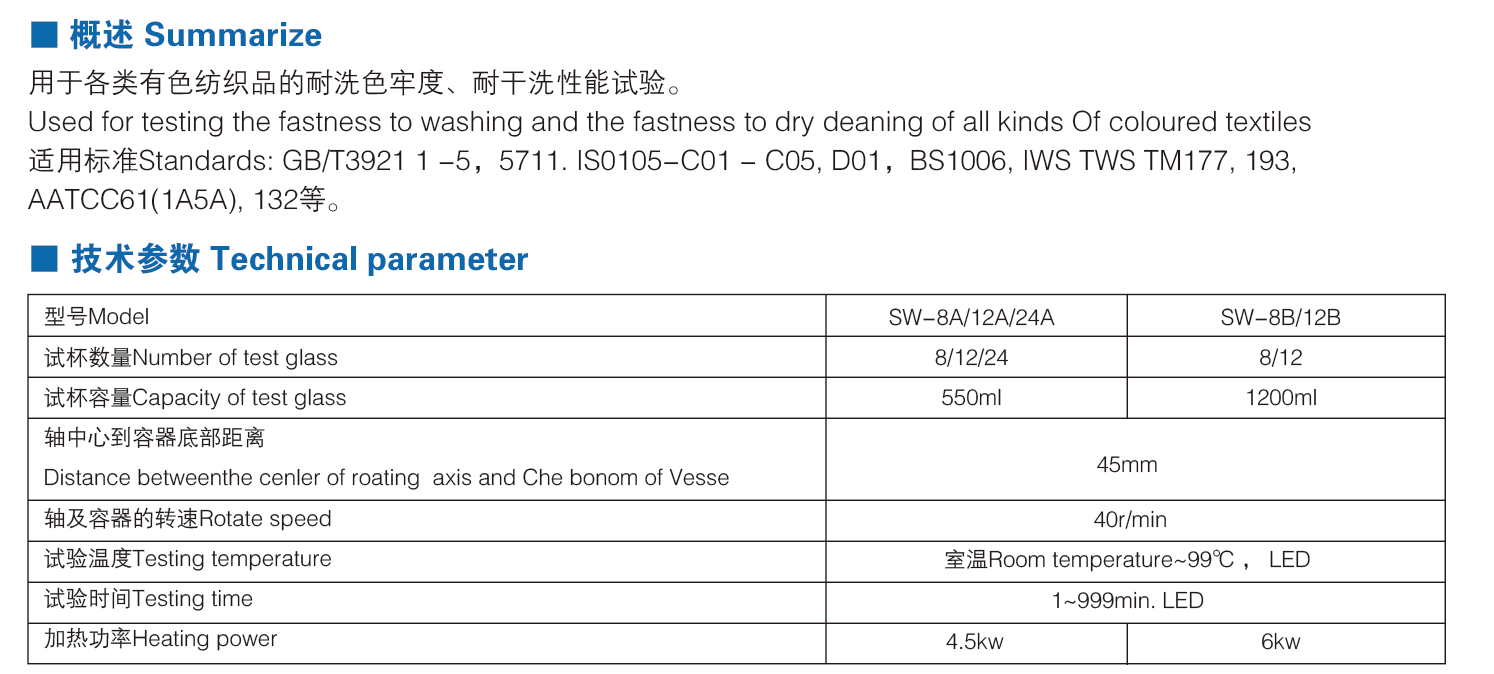 SW-8A/12A/24A耐洗色牢度實驗機